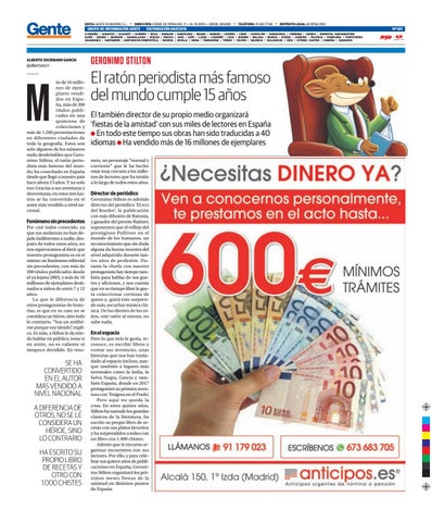 El ratón periodista más famoso del mundo cumple 15 años El también director de su propio medio organizará ‘fiestas de la amistad’ con sus miles de lectores en España En todo este tiempo sus obras han sido traducidas a 40 idiomas Ha vendido más de 16 millones de ejemplares men, un personaje “normal y corriente” que le ha hecho estar muy cercano a los millones de lectores que ha tenido a lo largo de todos estos años.