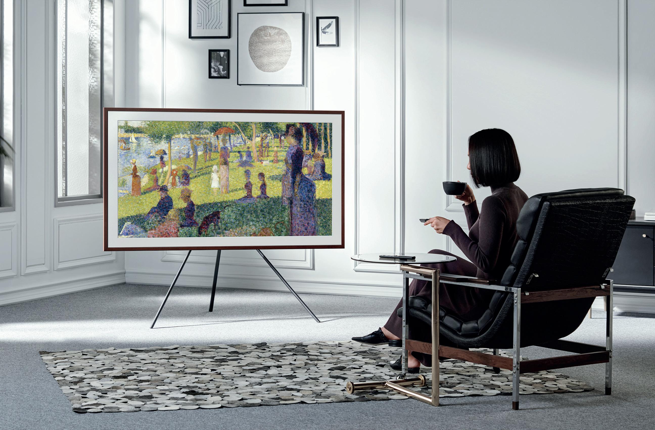 • Smart TV Samsung The Frame: Este televisor de 85” QLED 4K luce bien en cualquier rincón en casa y te permite disfrutar de mil millones de tonos de colores brillantes al 100 % del volumen de color, que se mantienen fieles incluso en escenas brillantes. Disfruta de una mayor visibilidad de la pantalla prácticamente sin reflejos de luz, de día o de noche. Además, personaliza The Frame con diferentes estilos de bisel y opciones de color.