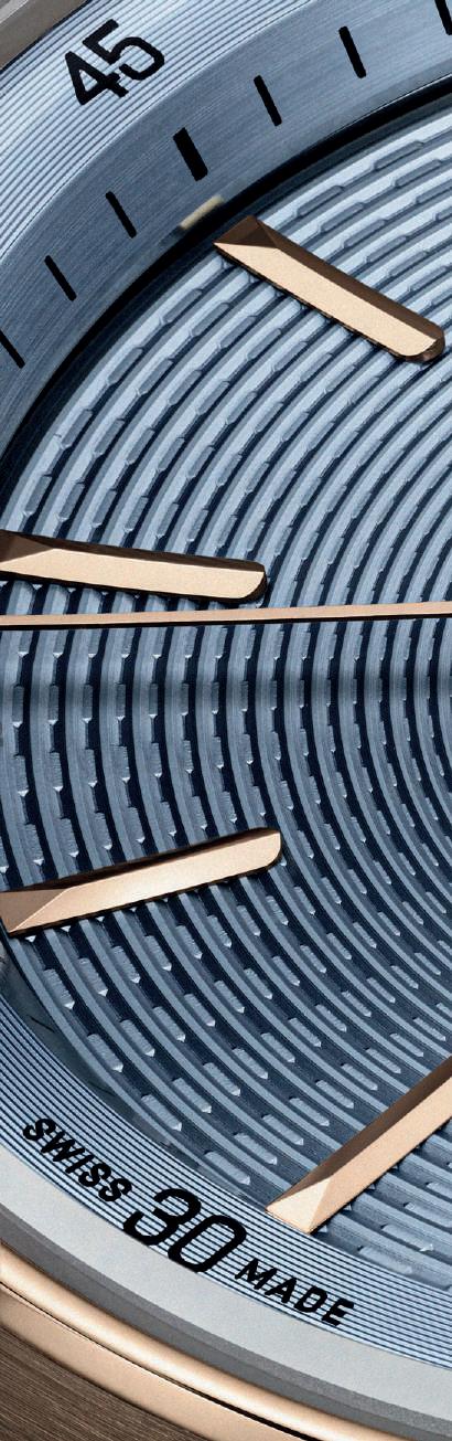 64 ACCESORIOS: SNEAKERS PISANDO FUERTE Texto Rubín de Celis 68 JOYERÍA: JORDI RABAT ALIADOS CON EL TIEMPO Texto Juan Luis Gallego Fotografía Juanlu Real 72 RELOJES: LOUIS VUITTON EL ARTE DE LOS OFICIOS Texto Ricardo Balbontín 78 BIENESTAR: SHA WELLNESS CLINIC UN CRUCERO TRANSFORMATIVO Texto Ricardo Balbontín Fotografía Jacobo Medrano 84 COSMÉTICA A FAVOR DEL TIEMPO Texto Lucía Heredero Fotografía Massimiliano Polles Ilustraciones Sofía Revilla MOTOR 88 NISSAN: ALFONSO ALBAISA ARTE CON PRISMA TECNOLÓGICO Texto Ricardo Balbontín 92 CUPRA BORN VZ ELÉCTRICAS SENSACIONES Texto Juan Parra FOROS GENTLEMAN 94 UN EVENTO GOURMET Texto María Rosa Fotografía Eva Peñuela RELOJES Texto Ricardo Balbontín 100 ZENITH SUBIDO A LA RED DEL TIEMPO 102 SWATCH EL VIAJE DEL ARTE EN LA MUÑECA 104 AUDEMARS PIGUET CÓDIGOS DE BUENA CONDUCTA 106 BLANCPAIN TERRITORIO DE GRANDES COMPLICACIONES SECCIONES 108 AGENDA NACIONAL E INTERNACIONAL Texto Luis Ini / Natalia Erice 112 NOTAS 114 ICONO: DUKE ELLINGTON Texto Luis Ini 8 54 72 78 CONTENIDOS 04.2024