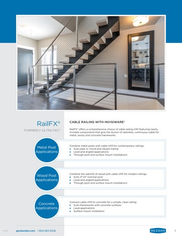 Combine metal posts with cable infill for contemporary railings. u Suits pipe or round and square tubing u Level and angled applications u Through-post and surface mount installations