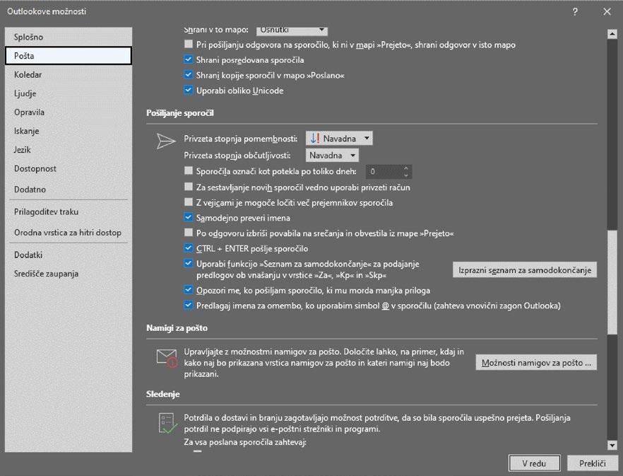 Pošiljanje sporočil odstranite kljukico pri srečanja in obvestila iz mape Prejeto'