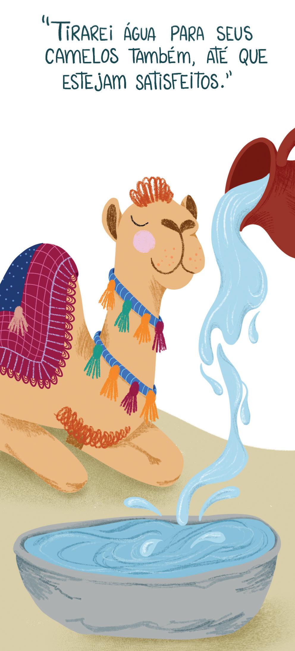 9 Então o servo colocou a mão debaixo da coxa de Abraão, seu senhor, e jurou seguir suas instruções. 10 Em seguida, pegou dez camelos de Abraão, carregou-os com presentes valiosos de todo tipo da parte de seu senhor e viajou para a terra distante de Arã-Naaraim. Chegando lá, dirigiu-se à cidade onde Naor, irmão de Abraão, havia se estabelecido. 11 Ao entardecer, quando as mulheres saíam para tirar água, ele fez os camelos se ajoelharem perto de um poço nos arredores da cidade. 12 Então o servo orou: “Ó Senhor, Deus do meu senhor Abraão, por favor, dá-me sucesso hoje e sê bondoso com o meu senhor Abraão. 13 Como vês, estou aqui junto desta fonte, e as moças da cidade estão vindo tirar água. 14 Esta é minha súplica. Pedirei a uma delas: ‘Por favor, dê-me um pouco de água do seu cântaro para eu beber’. Se ela disser: ‘Sim, beba. Também darei água a seus camelos’, que seja ela a moça que escolheste para ser mulher do teu servo Isaque. Desse modo, saberei que foste bondoso com o meu senhor”. 15 Antes de terminar a oração, o servo viu aproximar-se uma moça chamada Rebeca, que trazia um cântaro no ombro. Ela era filha de Betuel, filho do irmão de Abraão, Naor, e de sua mulher, Milca. 16 Rebeca era muito bonita, tinha idade para casar e era virgem. Ela desceu à fonte, encheu o cântaro e voltou. 17 O servo de Abraão correu até ela e lhe pediu: “Por favor, dê-me um pouco de água do seu cântaro para eu beber”. 18 “Sim, meu senhor, beba”, respondeu ela e, prontamente, baixou o cântaro do ombro e lhe deu de beber. 19 Depois que lhe deu de beber, disse: “Tirarei água para seus camelos também, até que estejam satisfeitos”. 20 Esvaziou depressa o cântaro no bebedouro e correu de volta ao poço a fim de tirar água para todos os camelos. 21 O homem a observou em silêncio, pensando se o Senhor lhe tinha dado sucesso em sua missão. 22 Por fim, quando os camelos terminaram de beber, o servo deu à moça uma argola de ouro para o nariz e duas pulseiras grandes de ouro para os braços. 23 “De quem você é filha?”, perguntou ele. “Diga-me, por favor, se seu pai tem lugar para nos