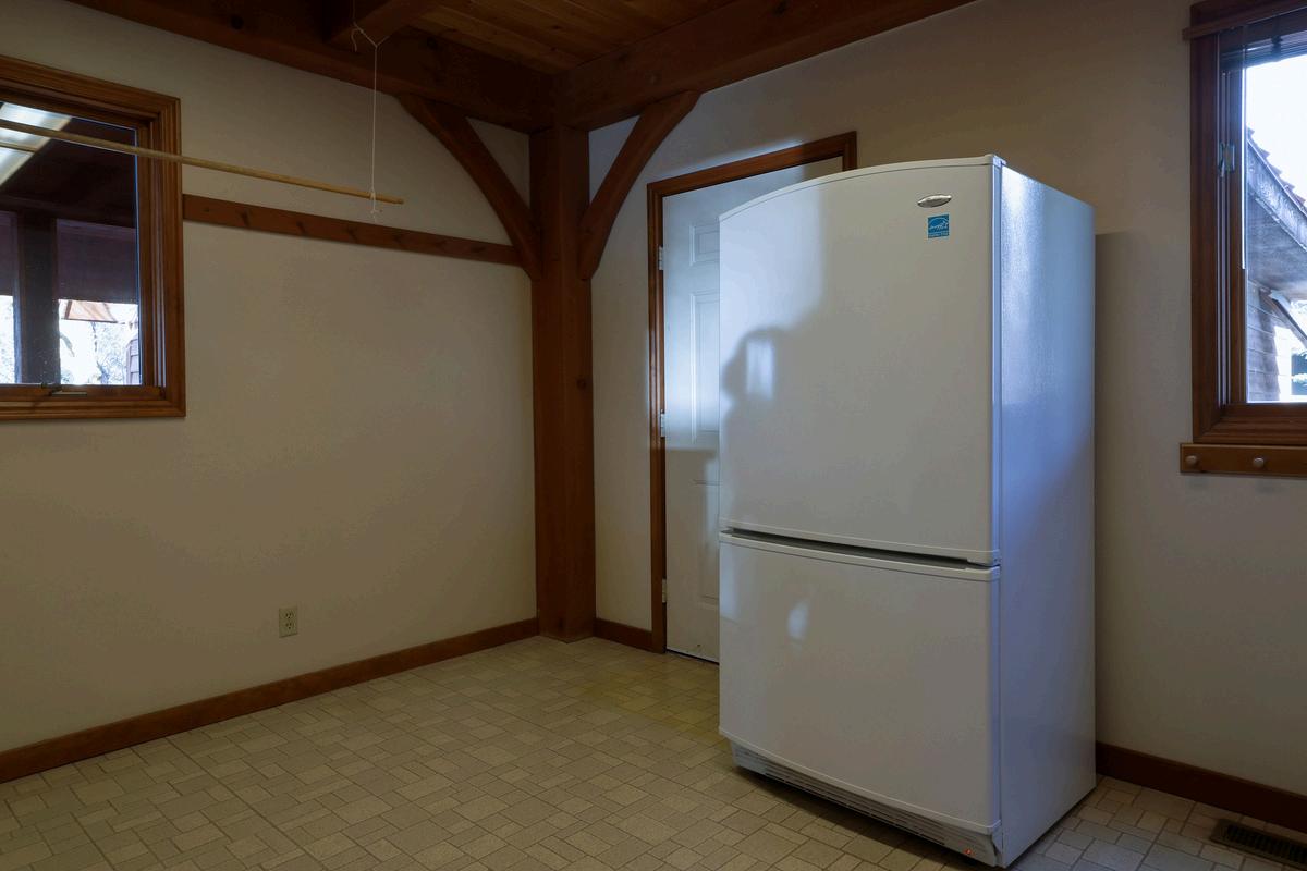 The front entranceway behind the double doors has a stone-tile floor and a large closet. When the inner front door is closed, the room traps heat and keeps the main house cooler in the summer.