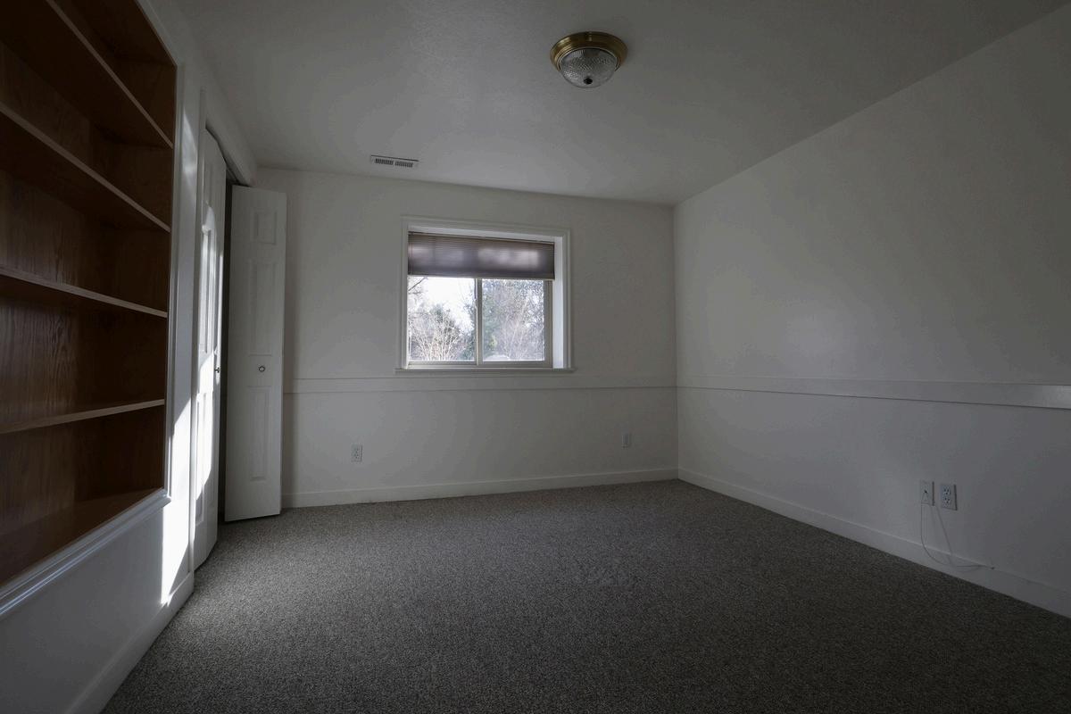 The lower-level north bedroom (window facing west)