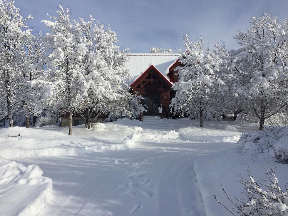 A white Christmas scene. The snowblower is available to the buyer.