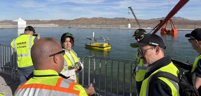 The connection between the field and the office was clearly on display at the Offsite Expo, which – just as in every ‘even’ year–was part of the 2024 Dimensions event. Attendees headed outdoors to a 6-hectare site a 30-minute drive from Las Vegas, where they could see hands-on demonstrations of machine control, monitoring, mapping and positioning in action. Hardware and software solutions were presented as equally important pieces of the data-centric workflow. “We try to tell a story around data,” said Riley Smith, Trimble’s marketing director, monitoring, mining and tunnelling, during the guided tour of the Offsite Expo for media partners.