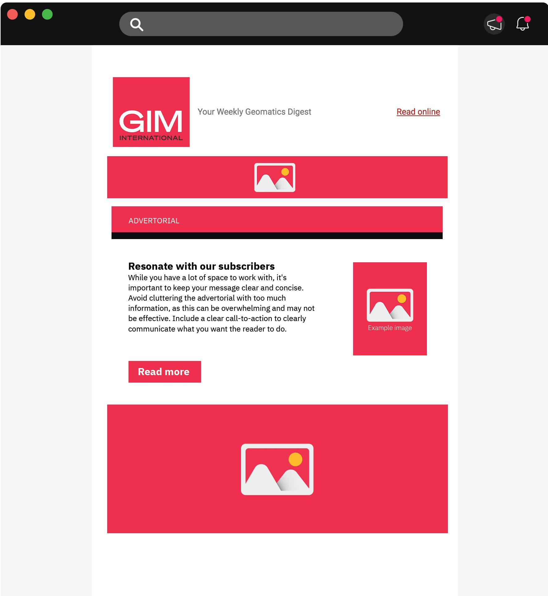 Amplify your brand's reach and visibility through strategic display advertising on GIM International. Take advantage of our reputable platform, a go-to resource for geospatial professionals globally, to spotlight your brand and offerings. Our website is compatible with the most widespread IAB standard ad formats, ensuring a smooth and effortless integration of your campaigns. As an additional service, we can also create banners for you if you don't have any available.