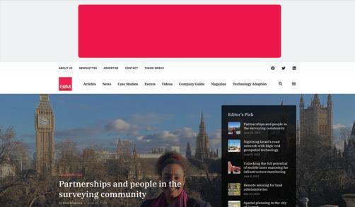 With its website, magazines and newsletters, GIM International is an independent media platform that, over the past decades, has established itself as an accessible, reliable, respected and authoritative source of news and developments in the worldwide geospatial sector. This goes a step beyond merely reporting on the latest technological innovations; many articles focus on analysing trends and providing real-life examples of how new techniques and solutions are being applied in practice across the globe to achieve tangible benefits. Just some of the topics featured regularly include: GIS data, sensors, land administration, digital twins, robotics & autonomous systems, machine learning & AI, and the talent shortage.