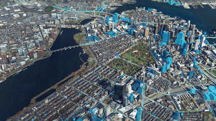 rising need for freshly acquired geospatial data is unlocking substantial opportunities in the sector. This example features a reality mapping 3D model of Boston, which forms the basis for digital twins of cities. (Image courtesy: Bluesky and Esri)