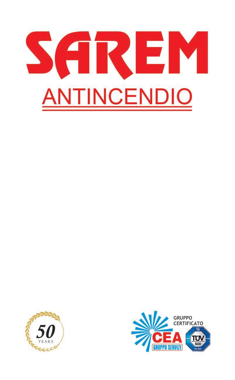 Assistenza e Manutenzione Estintori - Idranti e sistemi equipaggiati Porte REI e vie di esodo - Gruppi di spinta Evacuatori di fumo e calore Impianti sprinkler e a spruzzo d’acqua S.A.R.E.M. S.r.l. Via E. Bona, 25 - 13900 Biella Tel. 015 28639 - Fax 015 3351511 E-mail: info@sarem.it www.sarem-antincendio.it