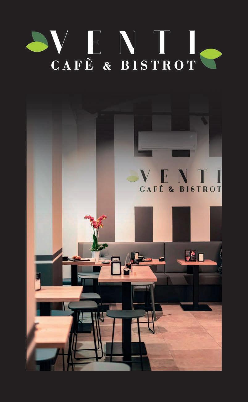 APERTO dal lunedì alla domenica orario continuato 06.00-20.00 Novara • Corso Garibaldi, 20 • Tel. 0321 231054 venticafebistrot@gmail.com Venti Café Bistrot • venticafebistrot