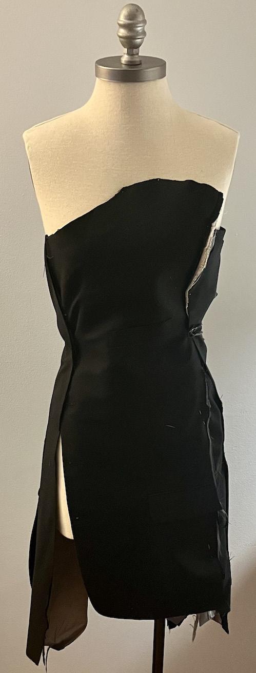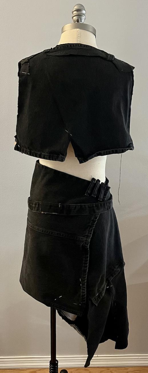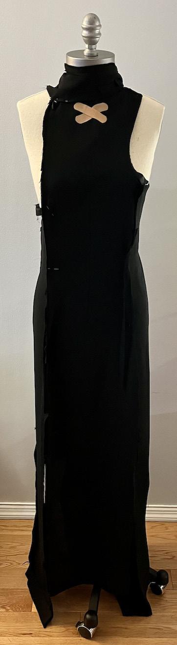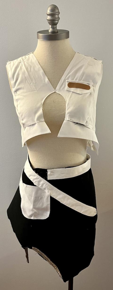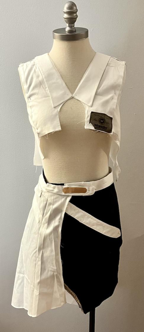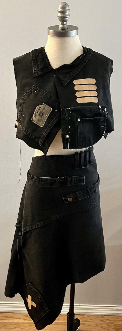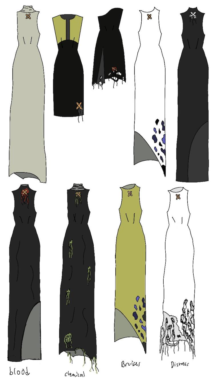 this collection takes a look at the film “fight club” and how the characters circum to radical solutions; from self-destruction, dilusion, anti-consumerism violence, and more. i chose to take on design problems and creations through radical solutions like the narrarator / jack does in the film. i chose to thrift 4 basic garments to take apart. the characters rid themselves of all possessions so then they are free to do anything they desire. i took this mindset when stripping apart the garment so then i can create as freely as possible using the garments. i decided to drape the looks with these four basics i thrifted as well as use obscure references from the film that real fans would notice and understand the origin of a graphic or text; as well as be able to connect the themes.