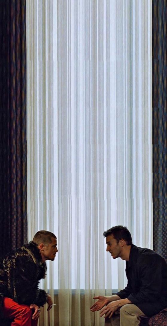 the colors black and white represent his split personality. the “puke green” as i call it came from the abandoned house jack amd tyler lived in.