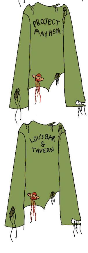 project mayhem and lou’s bar as logos to show the army they started as well as the birth of their fight club. lastly text layered on top of each other to represent his thought battling out with each personality.