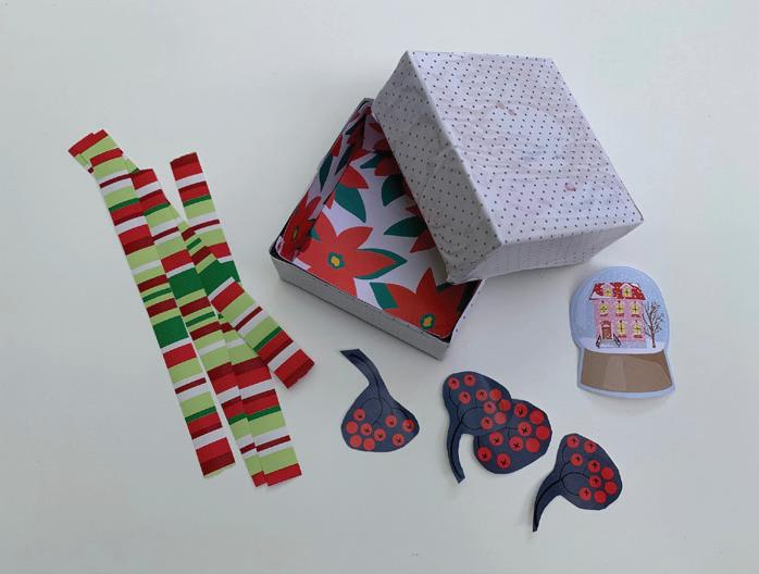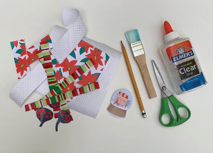 Decoupage—the art of adhering cut paper onto objects—dates back centuries and has been used over the years to create one-ofa-kind boxes, furniture, frames, vases and more. With scraps of holiday gift wrap and a minimal amount of additional materials, you can turn an unassuming item in your home into an eye-catching accessory. Here’s how to start: