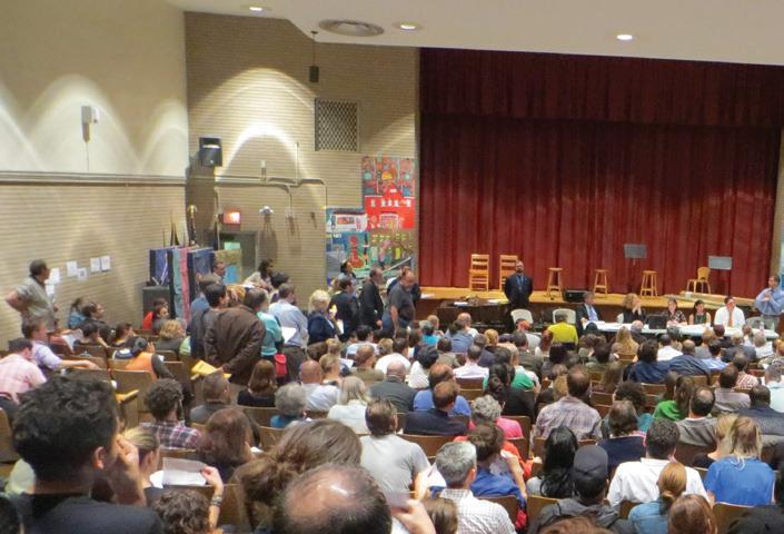Theyhad to be dragged kicking and screaming into the audi torium of PS 32, but by the end of the night the members of Commu nity Board 6, local politicians and their representatives, and various interested community members were having such a good time re-meeting each oth er that you might have thought it was an early holiday party.