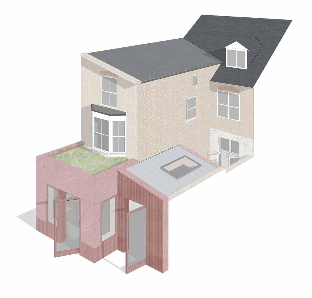 - Large glazing and doors opening out to the garden is proposed in place of the conservatory and rear of house.