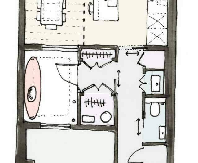 - To utlise space from main bathroom and bedroom wardrobe to create an en-suite, with a roof light for natural light.