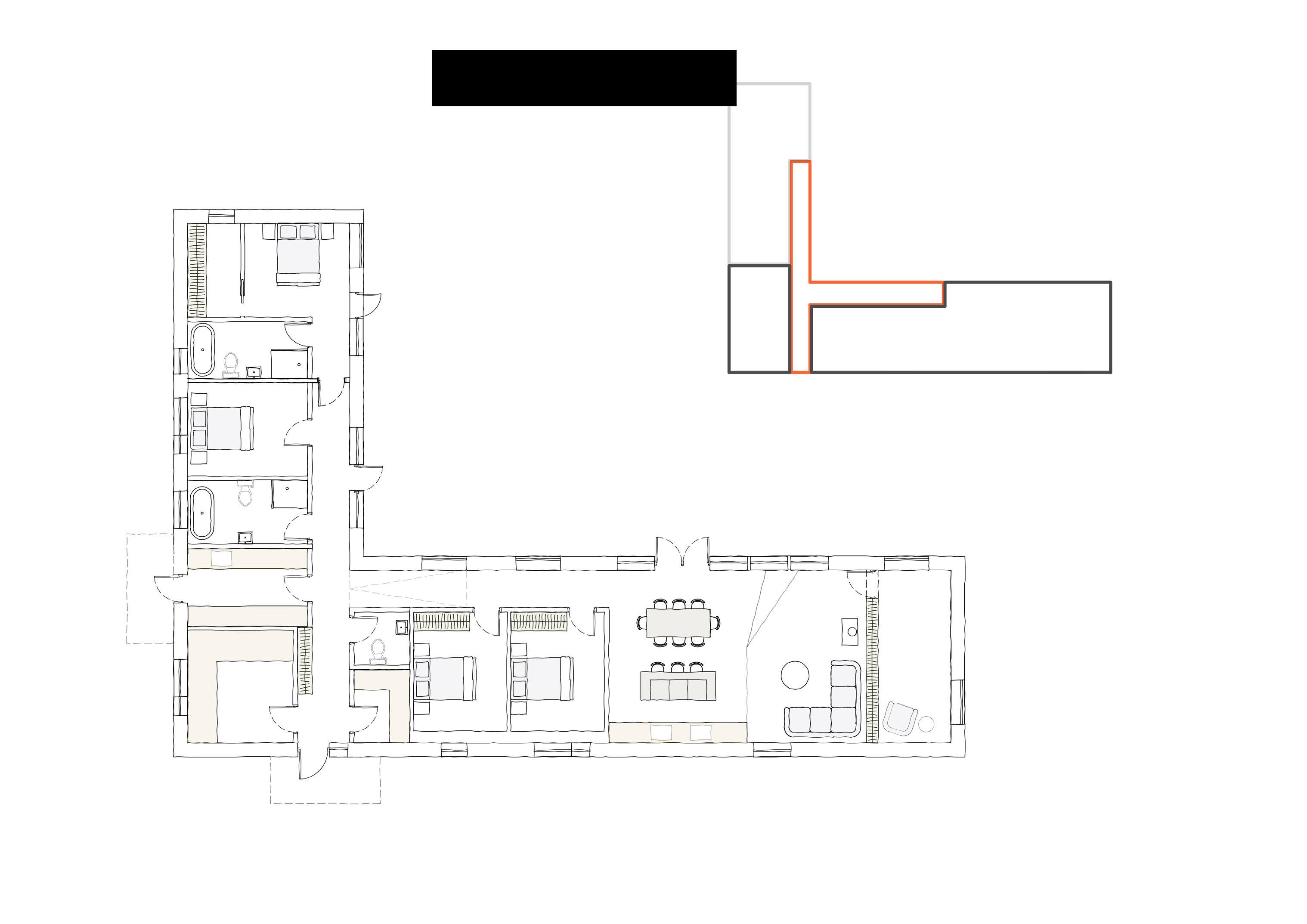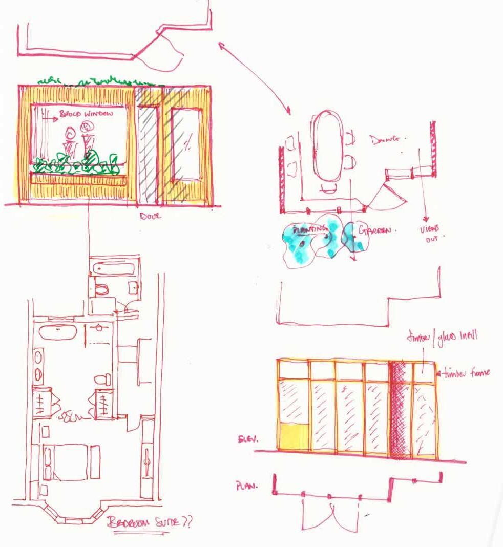 - Improve view from master suite with additonal windows, overlooking the green roof of the pool house and to contnue the view onto the neighbouring feld.