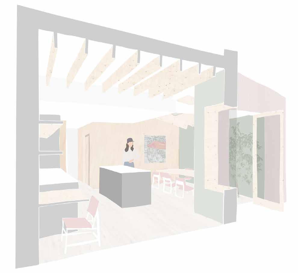 - To propose a decent sized study area with one large continuous desk along the slanted roof, having enough room for two people.