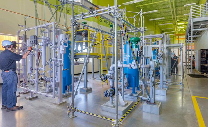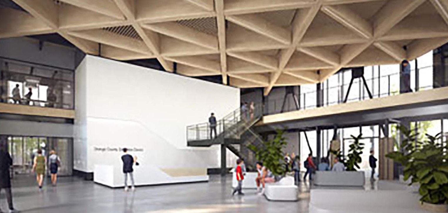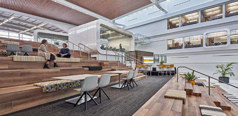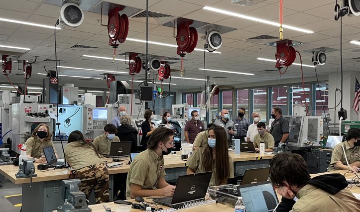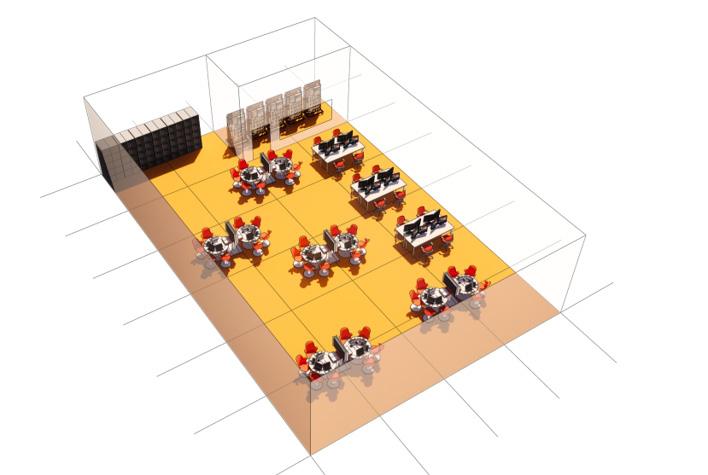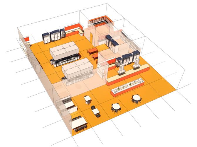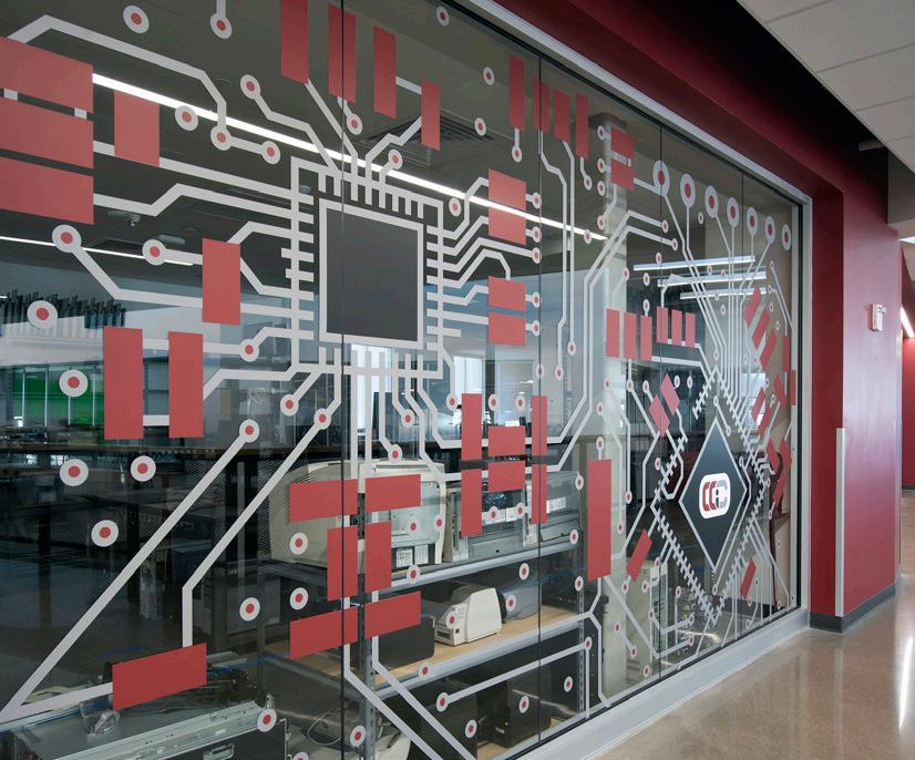 to have a common area on the first level and a more office-like setting on the second level that allows them to see everything occurring in the central commons space. Technology is also a double-height space that allows the technology program to highlight major technological advances and begins to highlight innovation at the facility.
