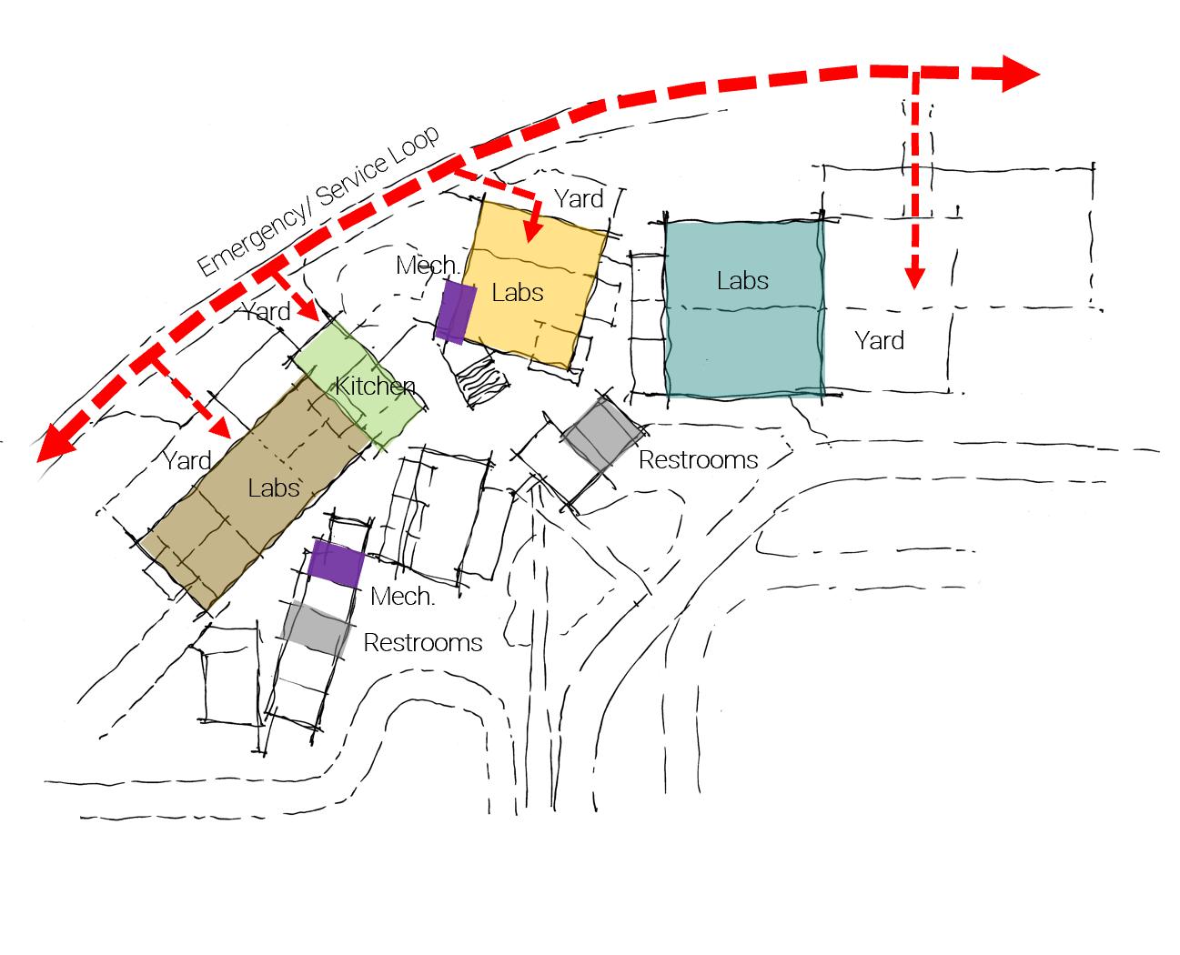 the property edge to allow for easy access for emergency vehicles and access to receiving yards and the other various yards of the proposed programs.