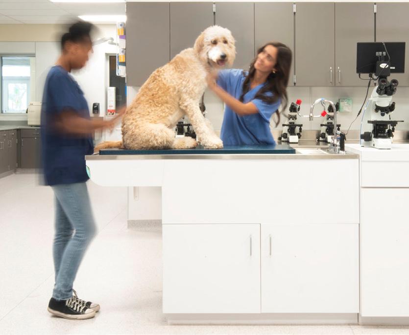 When a user is dropped off and begins to take the bridge into the facility at the main entrance, they are greeted with views of an outdoor urban farm and an outdoor veterinary clinic outdoor play area which begin to express the various programs incorporated into the facility.