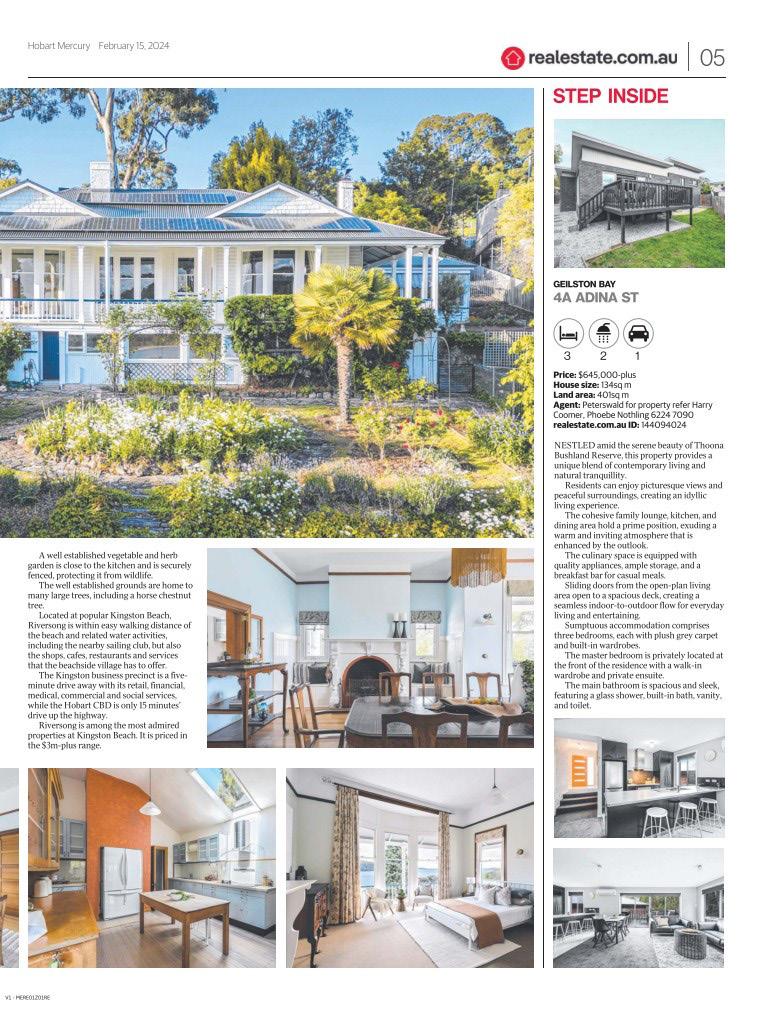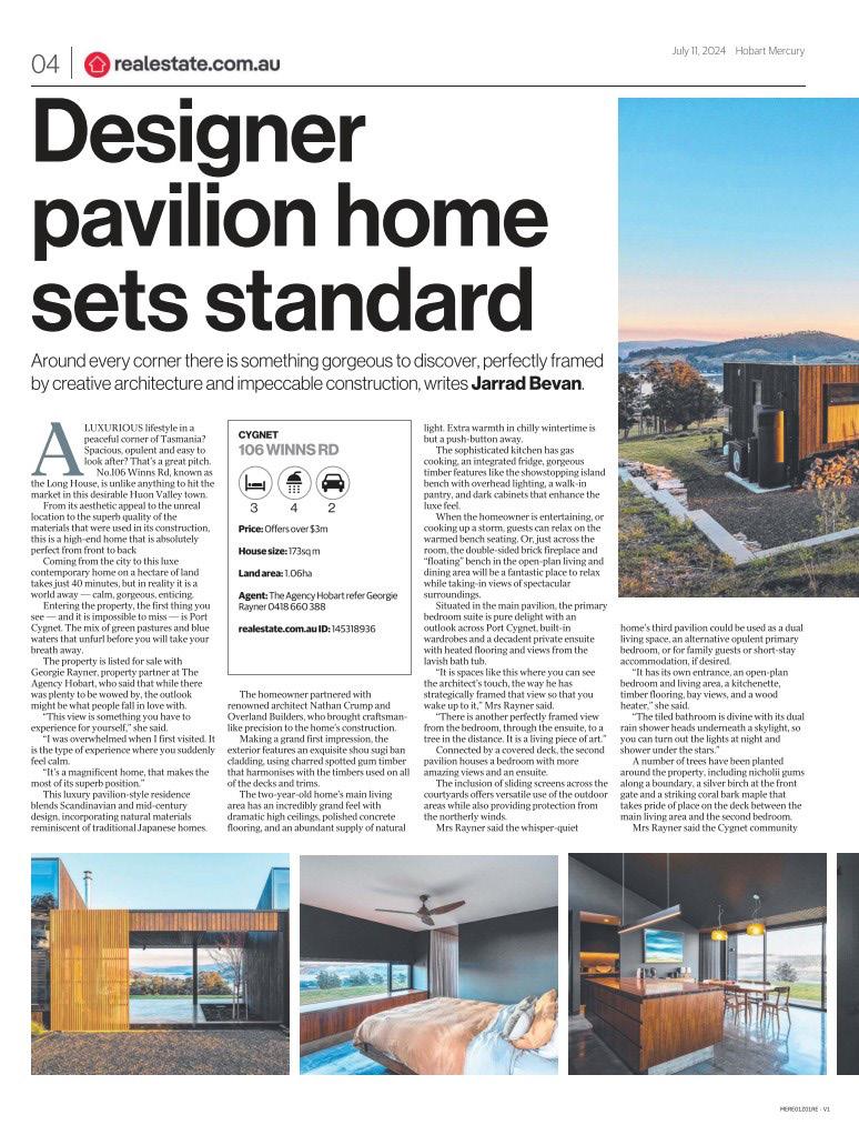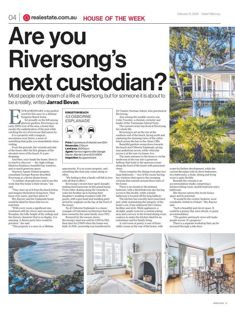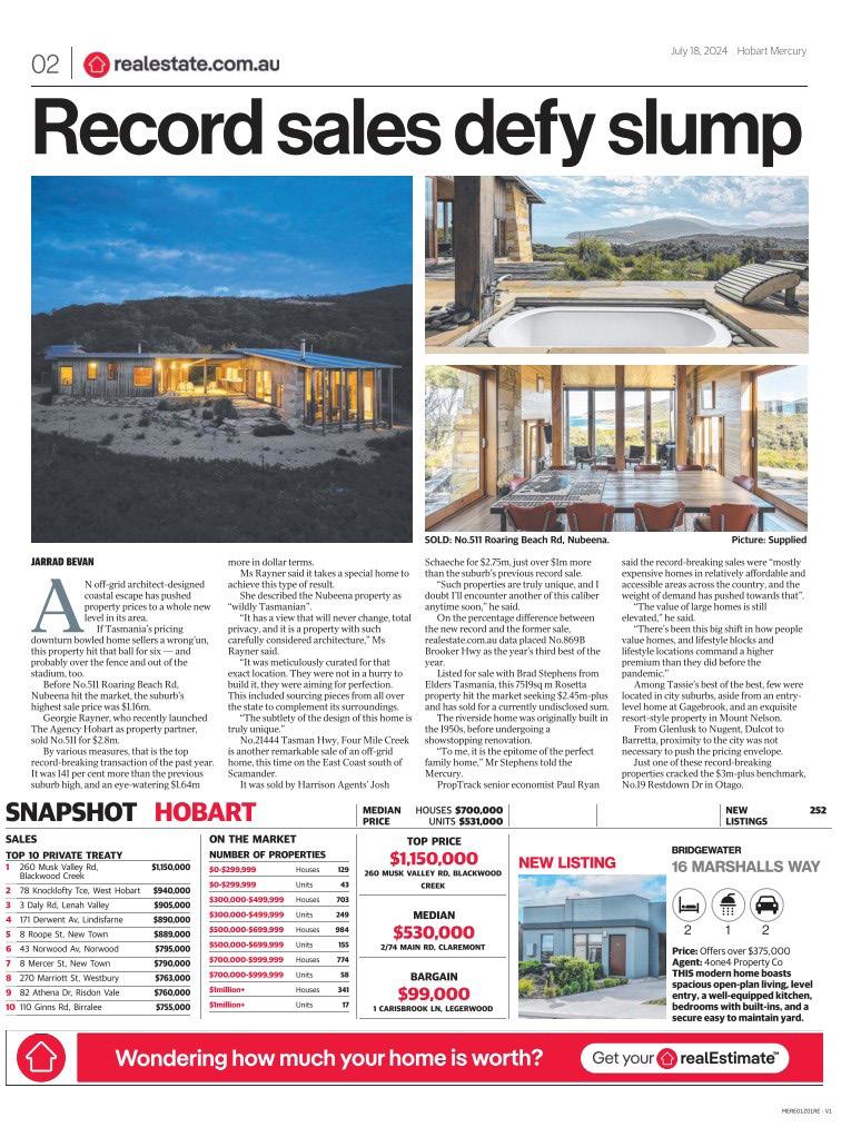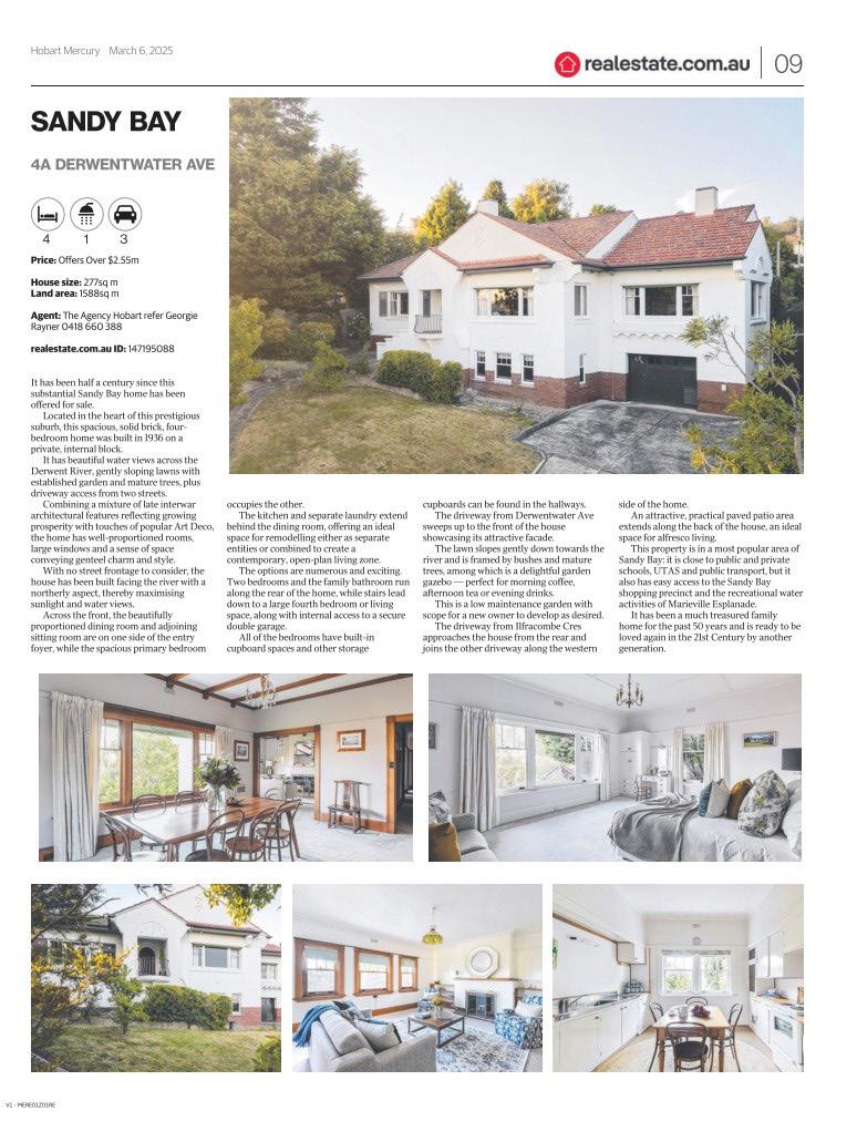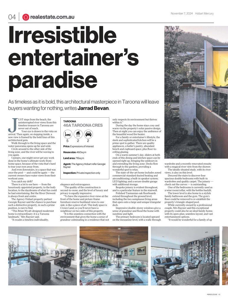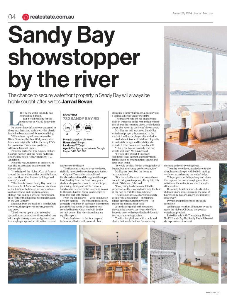 Respected for her professionalism and discretion, Georgie’s strong local ties and far-reaching network extend across generations. She remains actively involved in the community through Open House Hobart, the Royal Yacht Club of Tasmania, Queenborough Little Athletics Club, and the Raspins Beach Surf Life Saving Club.