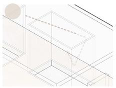 Au niveau de la matérialité, on s’est servis du bois lamellé-collé pour ses qualités performantes, mais aussi pour sa plasticité et sa capacité à franchir de longue portée. L’assemblage se procède tout d’abord par la connexion des lames de bois à un cadre par tenon-mortaise, une méthode de liaison assez simple et efficace. Pour assurer une stabilité latérale de ses lames, on a installé entre elles des traverses en bois, ce qui leur permettrons de bien se tenir entre elles. Leur disposition a été conçu d’une manière à être dissimulée, outre la matérialité, les traverses ont été disposés de manière à coïncider avec les pièces en bois. Finalement les pièces de bois ont été préfabriqués puis déposés pardessus les lames à l’aide de vis en bois, ce qui évite de nuire à la continuité formelle et matérielle du dispositif.