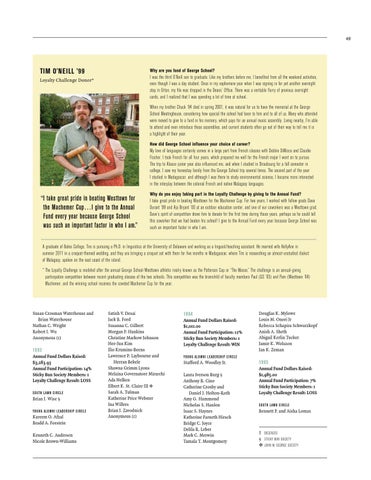 “ I take great pride in beating Westtown for the Machemer Cup…I give to the Annual Fund every year because George School was such an important factor in who I am.”
