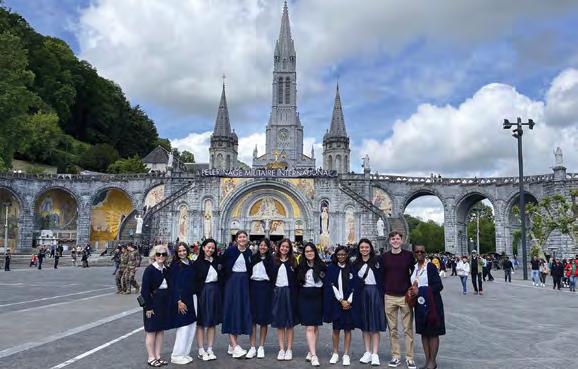 In Summer 2024, eight nursing students participated in a Magis Immersion Program in Lourdes, France. Millions of people visit Lourdes in an annual pilgrimage to seek relief in the location’s historic healing waters. The trip enabled undergraduate nursing students to provide compassionate care in one-onone settings to individuals from around the world—a rewarding experience that merged students’ spiritual engagement with experiential learning in preparation for their future professions.