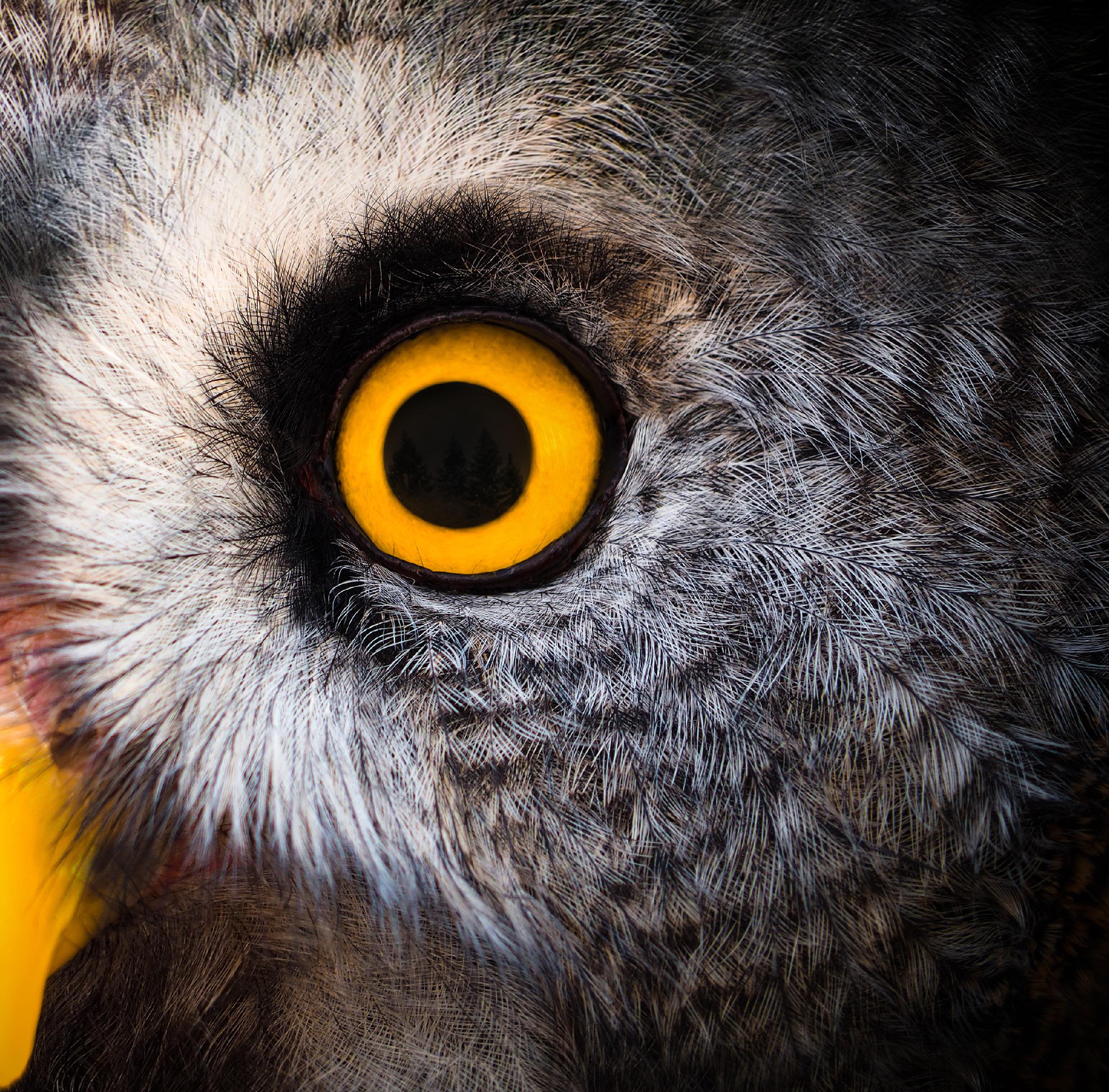 Dr. Adanna Johnson admires a Harris Hawk with falconer Rodney Stotts, as a Eurasian Eagle Owl looks on