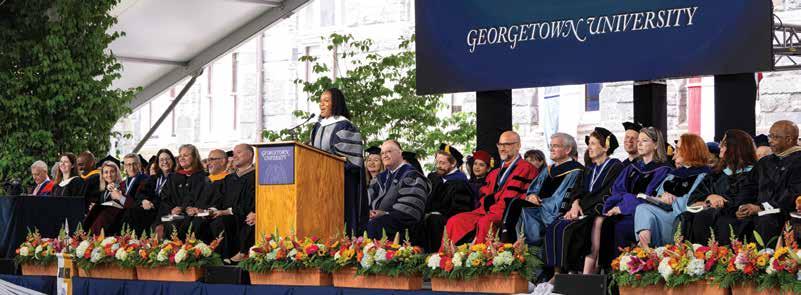 Imani Perry, L’02, H’24, a professor of women’s studies and African American studies at Harvard University, was the speaker at the Georgetown University Graduate School of Arts & Sciences commencement in May. Perry urged the assembled graduates to use their new degrees to benefit society. “I beg of you, please be kinder than the world we live in. Be your own miracle,” she said. Turn to page 26 for our report on the 2024 Georgetown Law commencement celebrations.