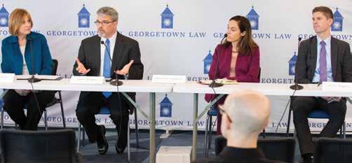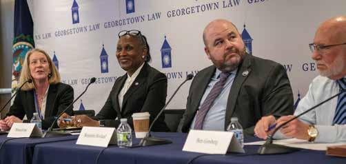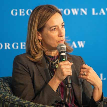 2: Prof. Jane Stromseth moderating a conversation on the Law Center’s ongoing work supporting Ukrainian atrocity crimes prosecutors with International Criminal Justice Initiative Senior Director Amb. Clint Williamson and colleagues Ingrid Elliott, Davorka Colak and Irisa Cevra 3. Visiting Prof. Mary McCord, L’90, moderating a panel at the Journal of National Security Law & Policy Symposium on “Election Integrity as a National Security Imperative,” with panelists Monica Evans, D.C. Board of Elections, Ben Ginsberg of the Hoover Institution and Benjamin Hovland of the U.S. Election Assistance Commission.