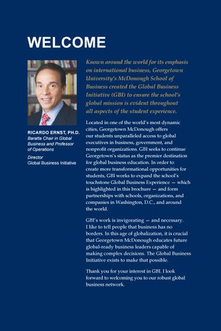WELCOME Known around the world for its emphasis on international business, Georgetown University’s McDonough School of Business created the Global Business Initiative (GBI) to ensure the school’s global mission is evident throughout all aspects of the student experience.
