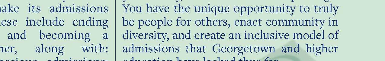 its commitment to a need-blind system of determining aid. Yet, the alleged “please admit” list highlights the role Georgetown plays in perpetuating inequity within higher education, prioritizing funding at the expense of a potentially more diverse and qualified student body.