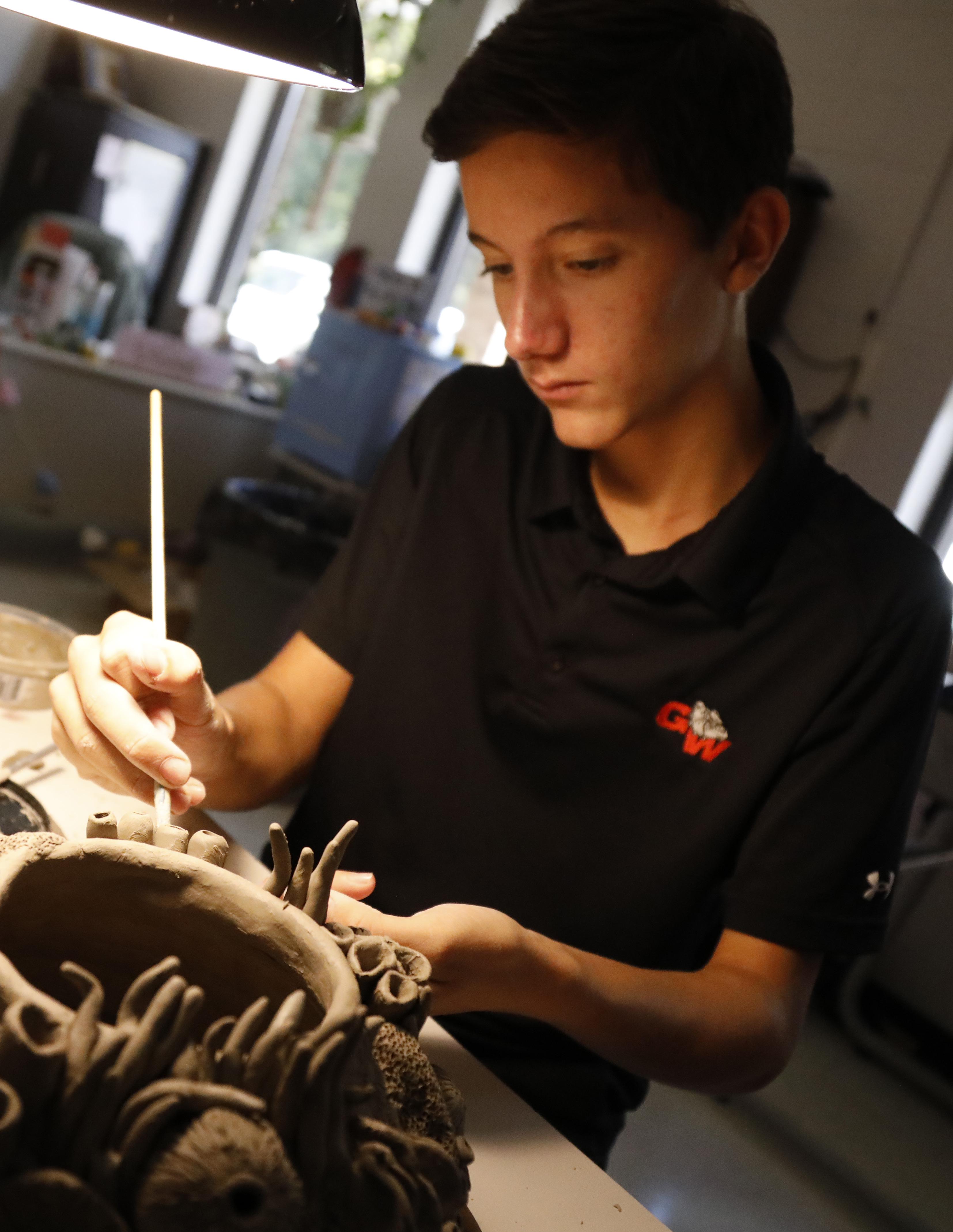There are opportunities for every student to shine at GWA with incredible award-winning fine arts offerings: marching band, theatre, piano, dance, video production, chorus, and concert band, as well as an impressive array of visual arts including, ceramics, fashion design, sculpture, drawing, painting, printmaking, and yearbook. In addition to exploring and strengthening their interests and talents, students also build leadership, fine motor, and criticalthinking skills through participation in GWA fine arts programs.