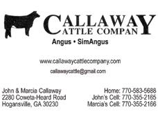 Send address changes to GEORGIA CATTLEMAN, 100 Cattlemen’s Drive, P.O. Box 27990, Macon, Georgia 31221. For advertising information, contact Georgia Cattlemen’s Association, P.O. Box 27990, Macon, GA 31221. Phone: 478-474-6560.