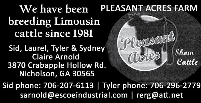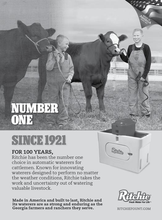 © GEORGIA CATTLEMAN The Georgia Cattleman magazine and the Georgia Cattlemen’s Association reserve the exclusive right to accept or reject advertising or editorial material submitted for publication. The editorial content contained in this magazine does not necessarily represent the views of the Georgia Cattleman magazine or the Georgia Cattlemen’s Association. Additionally, the Georgia Cattleman and Georgia Cattlemen’s Association staff and board members are not responsible for advertising errors made in camera-ready ads, nor are they responsible for submitted camera-ready ads that may contain non-approved copyrighted text, songs, poems or images. The advertiser or agency will be responsible for obtaining the appropriate permission from the copyright holder and will pay any copyright fee required for publication in the Georgia Cattleman.