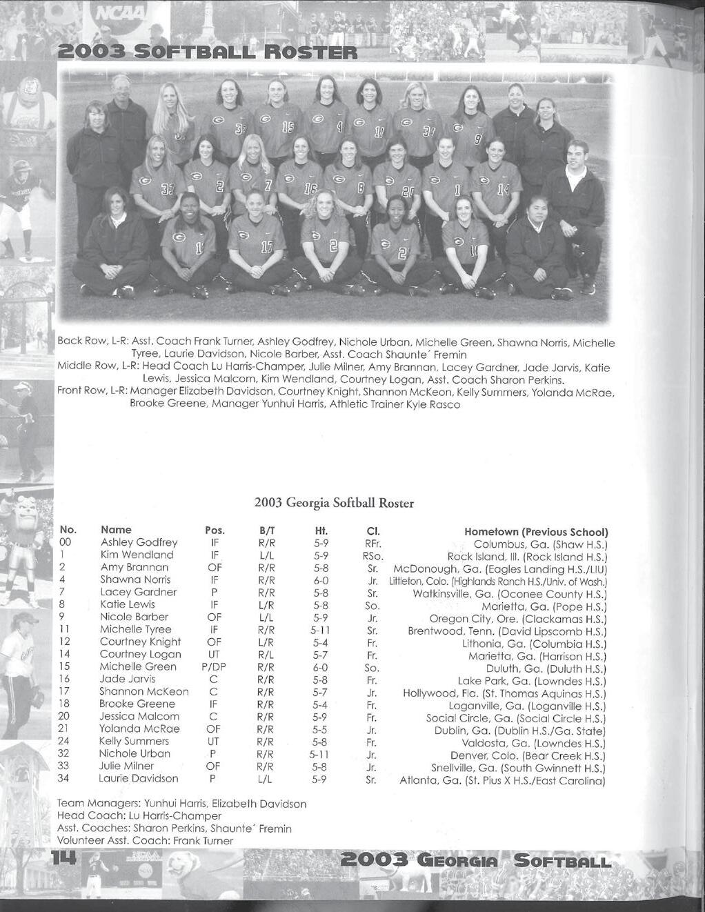 Georgia returns senior catcher Marisa Miller while senior utlility Sarah Gordon can also offer her services.