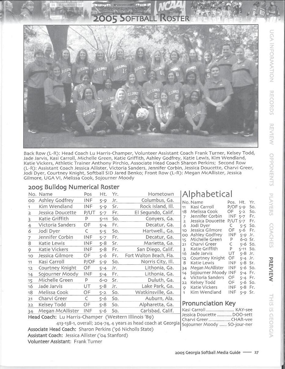 The Georgia Softball media guide was written, designed and edited by Sean Stevenson using Adobe InDesign 2025 and Photoshop 2025. This year's edition was updated and refurbished by Sam Carter using Adobe InDesign 2026.