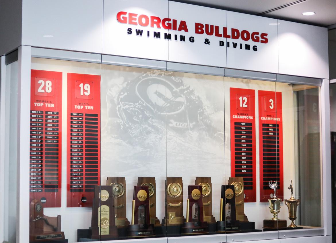 Located within the Bernard B. and Eugenia A. Ramsey Student Center, Gabrielsen Natatorium honors the legacy of legendary Georgia swimming and diving coach B.W. "Bump" Gabrielsen.