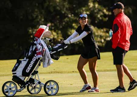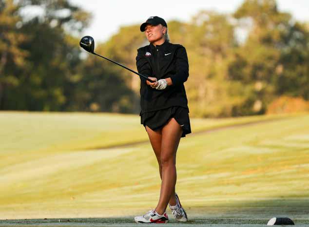 On the front cover: After notching top-20 finishes at each of the last three NCAA Championships, a roster heavy with newcomers will attempt to lead Georgia back to the national championships in 2024. The Bulldogs’ 10-golfer roster is featured on the front cover with (front L-R) Isabella Holpfer, Napat “Jennry” Lertsadwattana, Caterina Don, Bernice Olivarez Ilas and LoraLie Cowart and (back L-R) Kate Song, Savannah De Bock, Grace Frei, Natachanok “Drive” Tunwannarux and Celine Brovold Sanne.