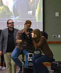 Ivan Zapata, ’25, cinema and media arts production (CMAP), volunteered to help operate the camera dolly. He attends GFA classes as part of the CMAP program and sees his future as a film director.