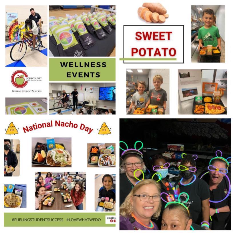 Cobb County is LIGHT ing up the school year with Cafeteria Promotions! Annually, Cobb County participates in cafeteria promotions to help encourage and support healthy eating by students. During November, Cobb hosted Wellness Events in celebration of STEM/STEAM Day, participated in Harvest of the Month, decked out the cafe for Glow Day, and celebrated National Nacho Day at lunch.