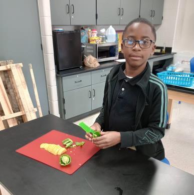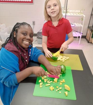 Douglas County School Nutrition & Gordon Food Service (GFS) have partnered up this school year to enhance our after school program. Cafeteria manager Randy Jones started the Growing Chefs (GC) program during the After School Program at Lithia Springs Elementary School. GC is a three class experience that gives students insight into what a kitchen looks like & how it operates.