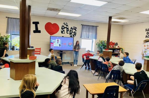 Laurens County Local high school student conducting a nutrition education lesson with elementary students entitled, “Where Does Your Food Come From?”.