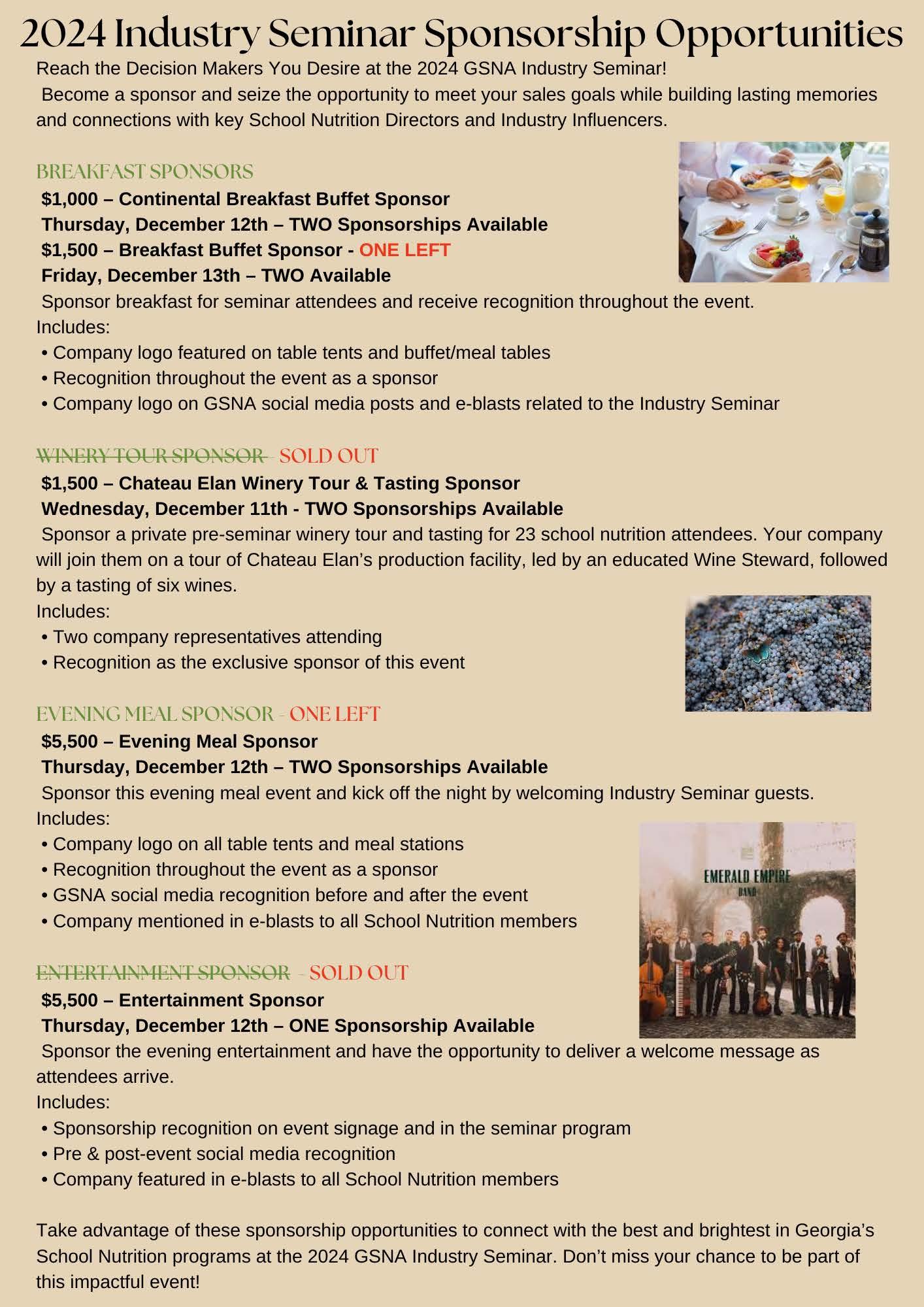 2024 Industry Seminar Corporate by Georgia School Nutrition Association - Issuu