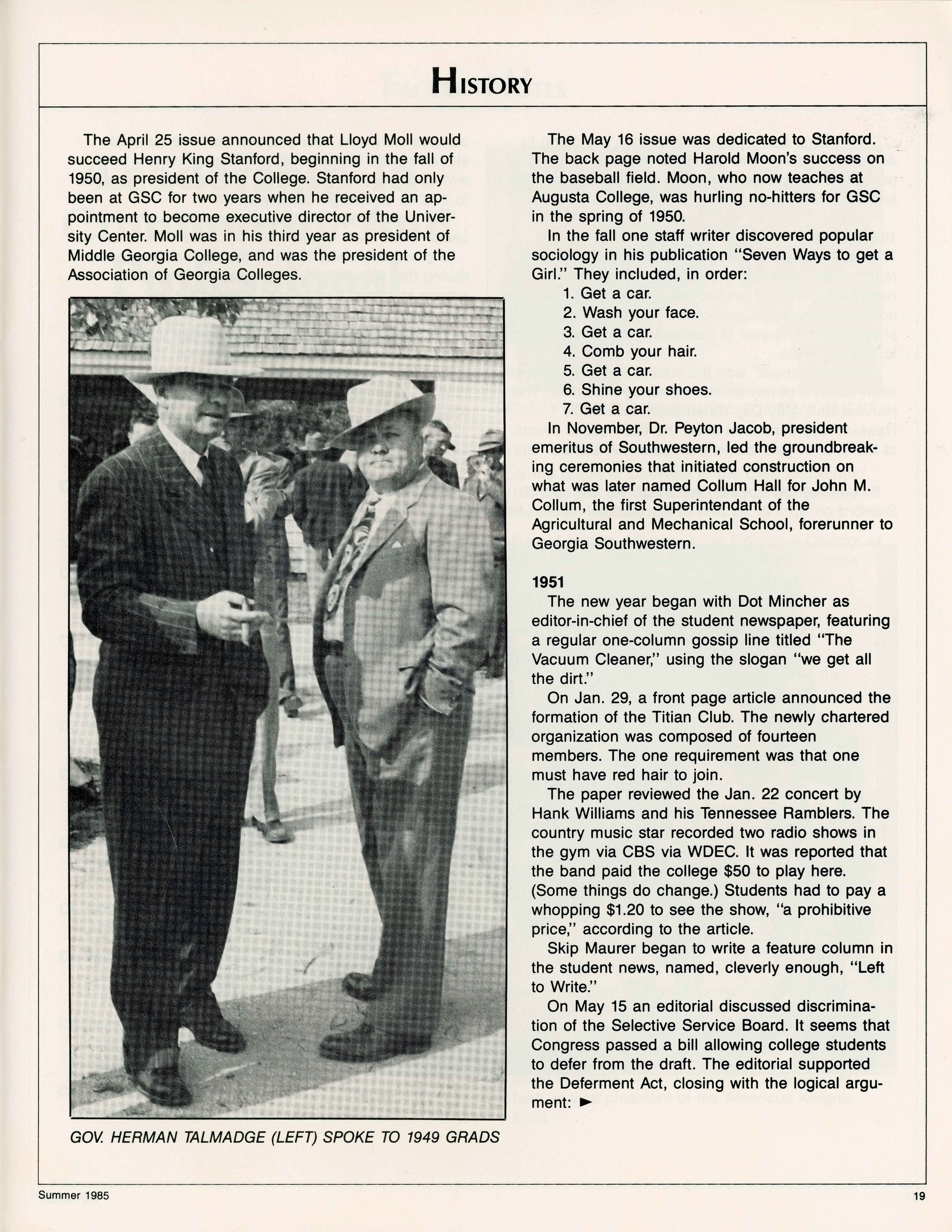 My family moved to Wildwood Circle in Americus, directly behind the old gym, in 1956. I was only eight years old at the time. So, I've grown up watching Georgia Southwestern evolve from a small junior college with five to six hundred students into a beautiful four-year college of two thousand plus