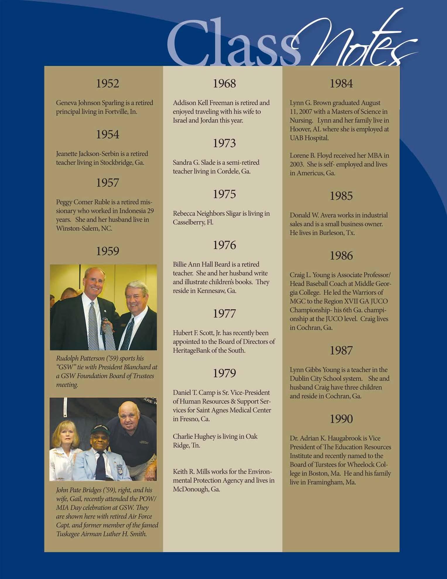 I cannot tell you how proud I am to be the President of Georgia Southwestern. Much of that pride is rooted in the realization that thi s in stitutio n has some of the finest and most acco mplished alunmi anyw here. I look forward to meeting as many of you as possible. Toward that end my wife C::onnieand I are going to visit as many of yo u as possible in you r home commun ities. At the san,e time, I hope yo u will take advantage of every opportunity to come to campus, drop by the office, and give me a chance to show you some of the great things that are happening at your Georgia Southwestern State University.